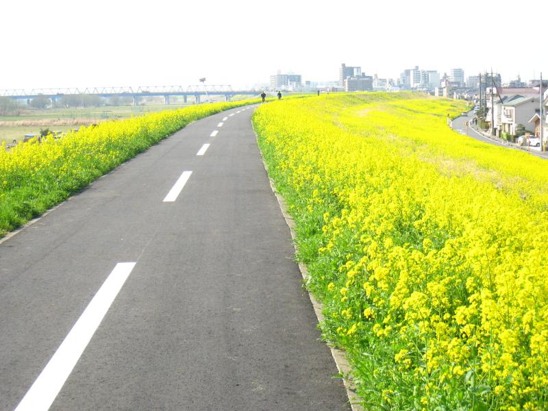 江戸川菜の花堤:季節にふさわしい見事な菜の花でした。
