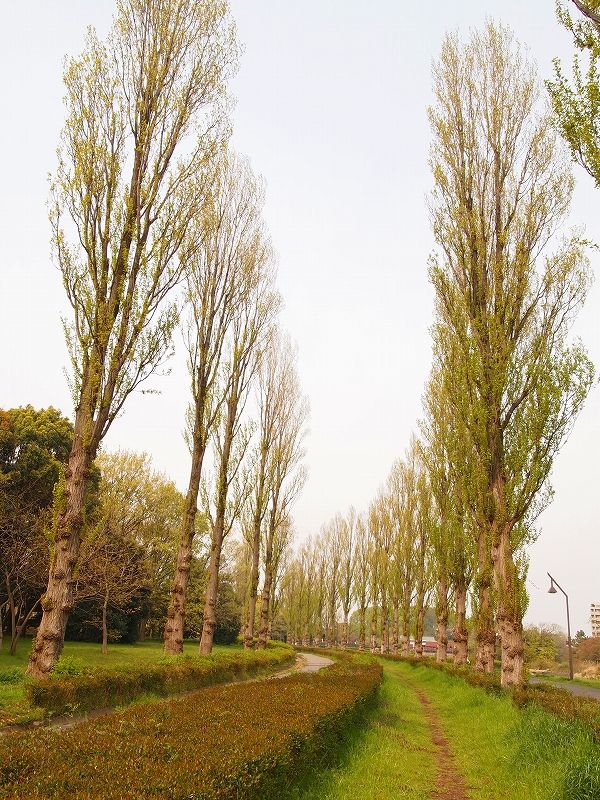 水元公園のポプラ新緑:都内で唯一水郷の景観をもった公園です