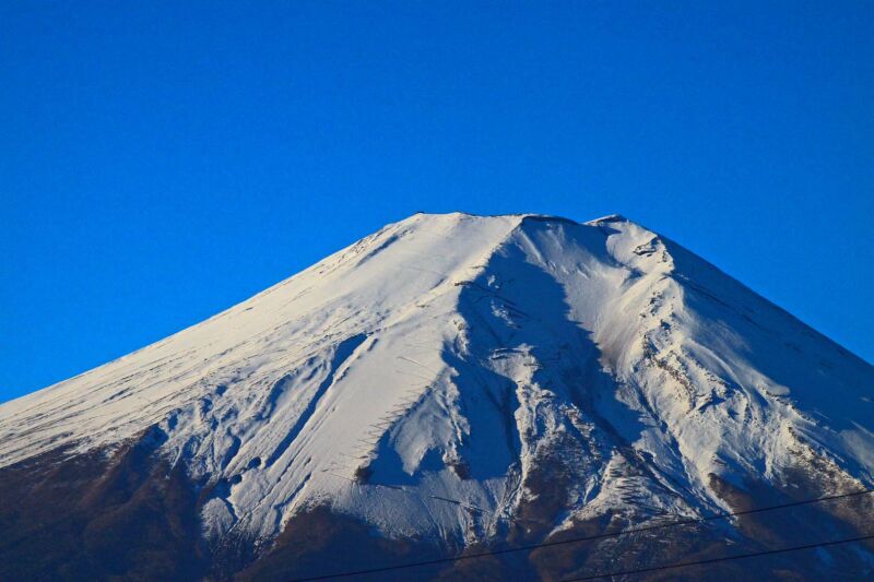 富士山 : 朝は横から日が当たるので、大沢崩れの左半分が影になっています。
