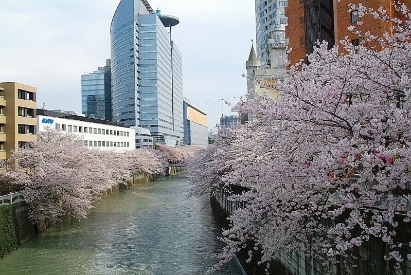 雅叙園近くの目黒川:なぜか最近人気になって花見客の多い目黒川。昔はほとんど人がいなかったのに今は外人さんにも人気です。