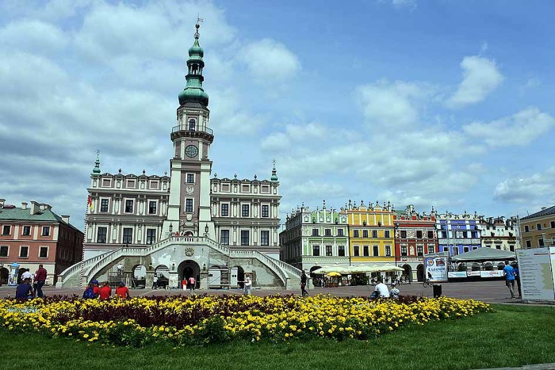 ザモシチの市場広場:ポーランド南部のザモシチ市場広場。16Cにイタリア人が街を建設。