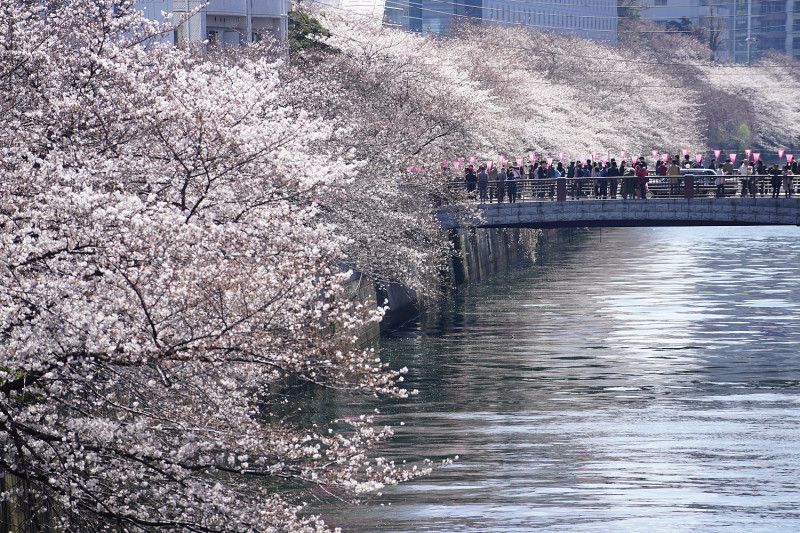 目黒川沿いは桜の名所で雅叙園の近くも結構人が出ています。