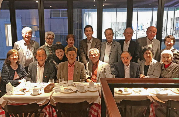 | 台風一過の青空広がる昼下がり、銀座のフレンチレストランに16名 が集まりました。北九州市からUターンした内田君と、オーストラリア在住の桝田君は久しぶりの参加。各人の近況報告をまとめると次のようでした。 |