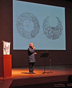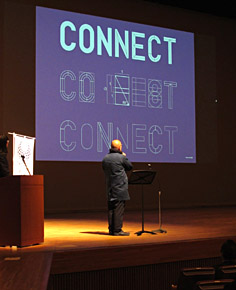野老さんからは、「個が集まって群になる」「つなぐ」というテーマから生まれたオリンピックエンブレムや、「トコロパターン」を紹介していただきました。 |