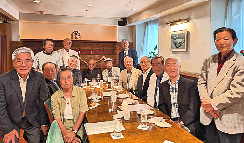 今年は卒業して60年が経過し、年齢が80歳になる節目の年であり、15名 (二次会参加を含む)の出席を得て、久し振りの再会を喜び皆で語り合った。 |