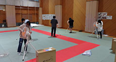 | 剣道場では剣道部と体操部(ダンス)が、柔道場では柔道部と吹奏楽部が活動しています。扇風機は今夏も熱中症対策におおいに役立ち、4つのクラブからは御礼の言葉を受け取りました。なお道場は、数年後に空調設備を施す計画とのことで、それまではレンタル扇風機を同窓会から支援する予定です。 |